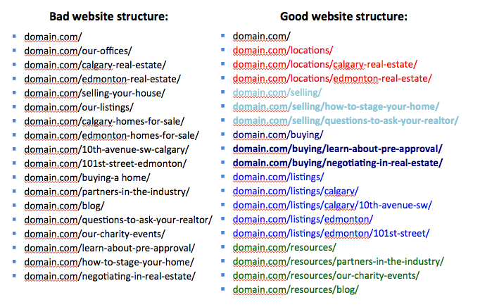 We discussed this in the on-page SEO post but here is an example of good vs bad structure: